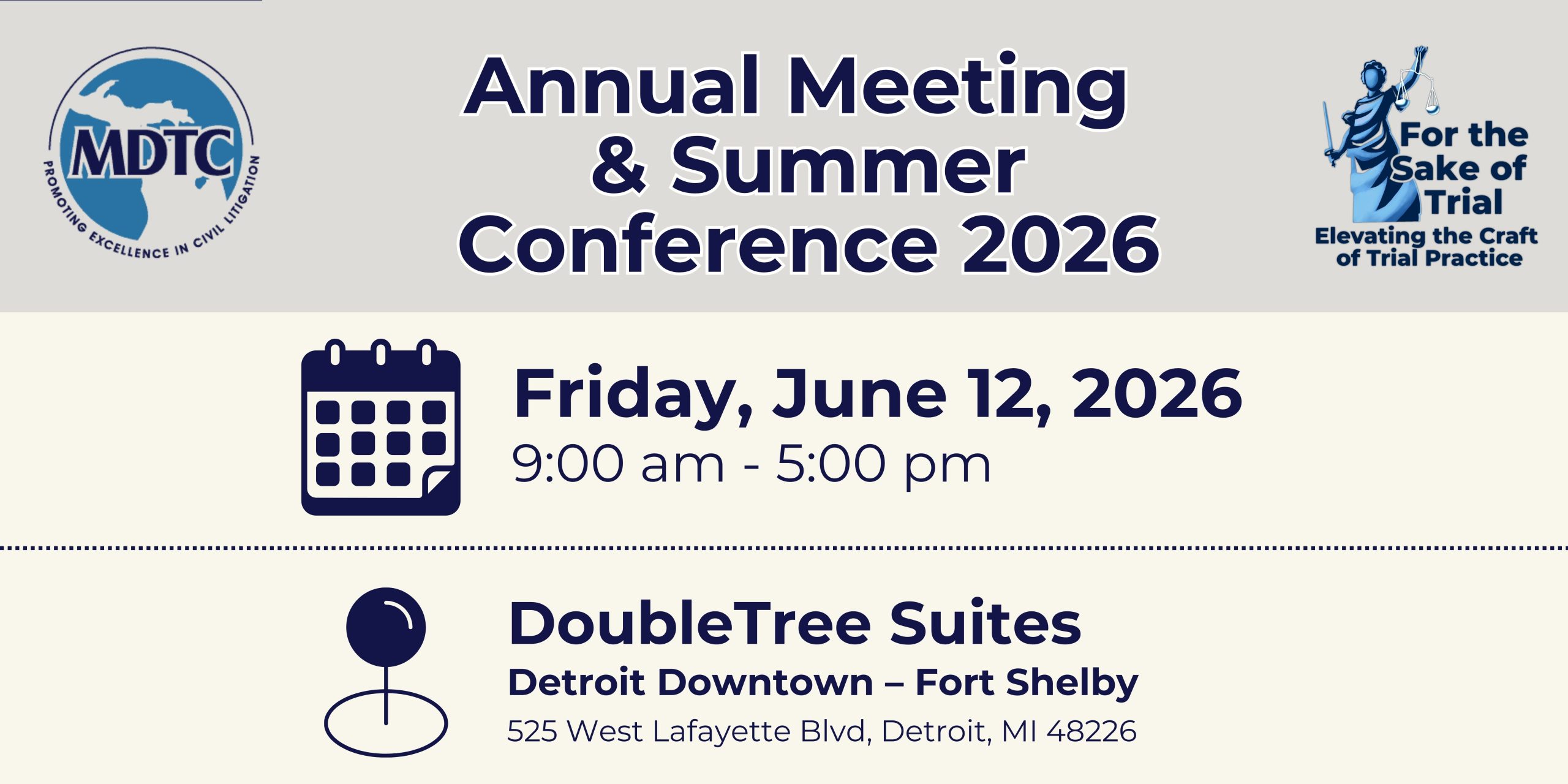 Register Now: Registration Housing: Reservations Join us for the 2026 Annual Summer Meeting & Conference: For the Sake of Trial - Elevating the Craft of Trial Practice